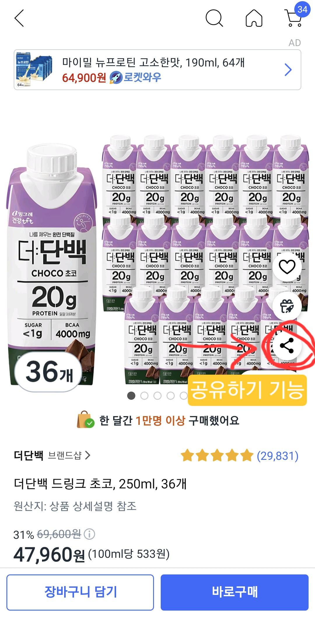 012(옆으로 넘기며 보세요) 쿠팡 상품을 폴센트에 관심등록 하는 방법 자주 구매하는 더단백 초코맛으로 설명드려요.