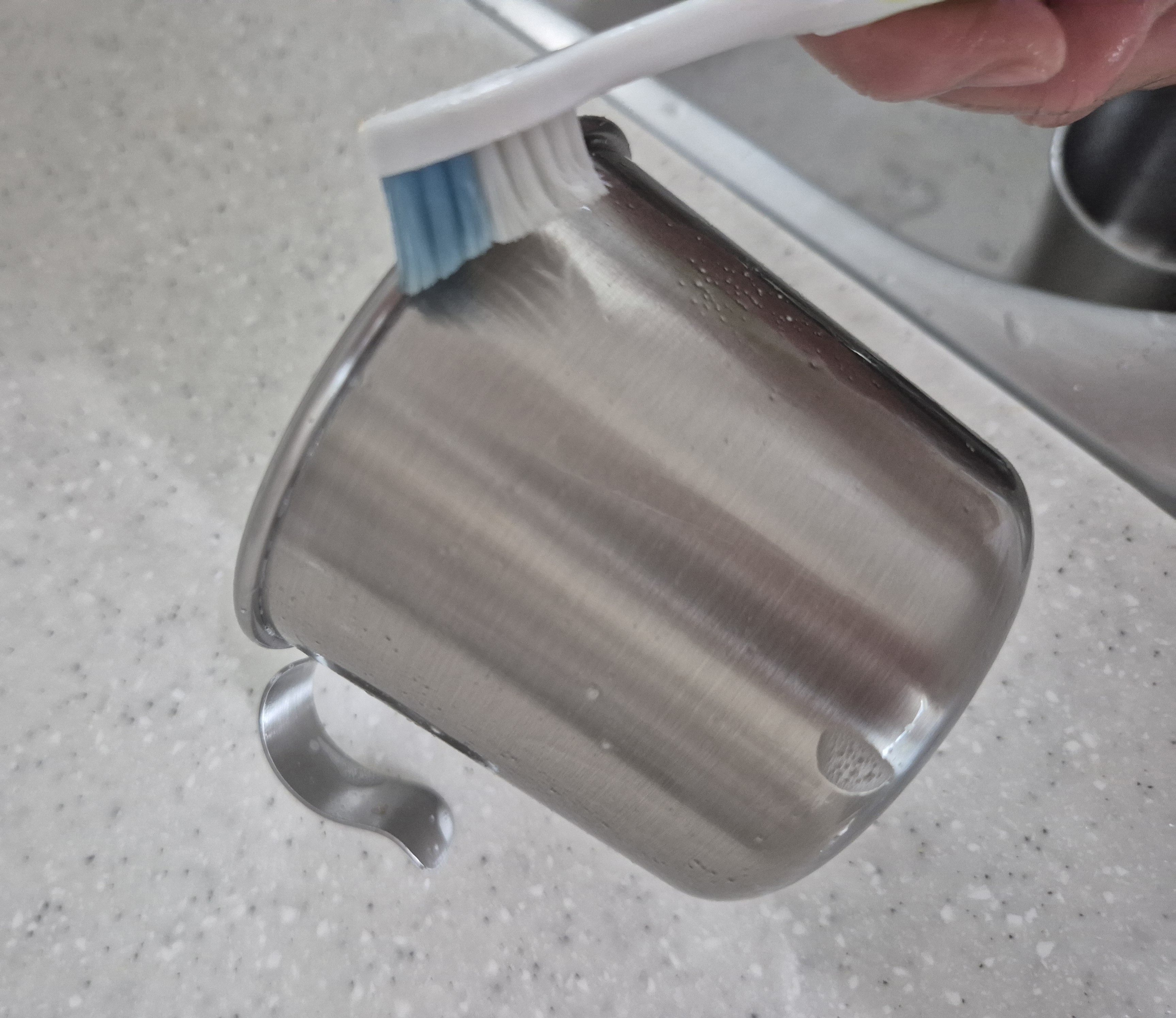 헴콤스트 냄비는 연마제가 많이 나오지 않았고(바닥은 많이 나옴), 스텐머그컵은 내부부터 제법 나와서 2번 제거했어요.